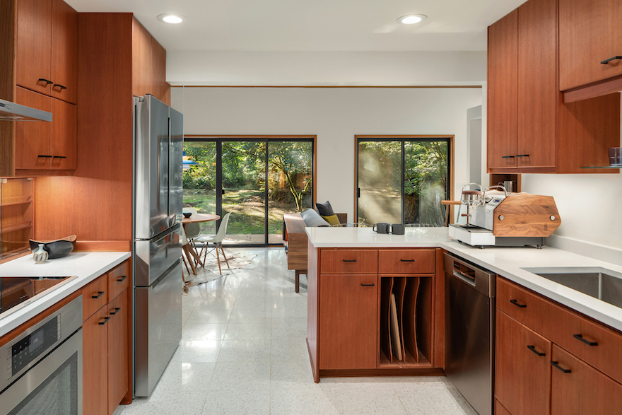 Modernous freed the Woodinville home from visual clutter and navigated the preservation-renovation quandaries with preserved teak and updated terrazzo with stunning results. Learn more about Modernous and see how you can partner with them for cohesively refreshing your MCM home by clicking here.